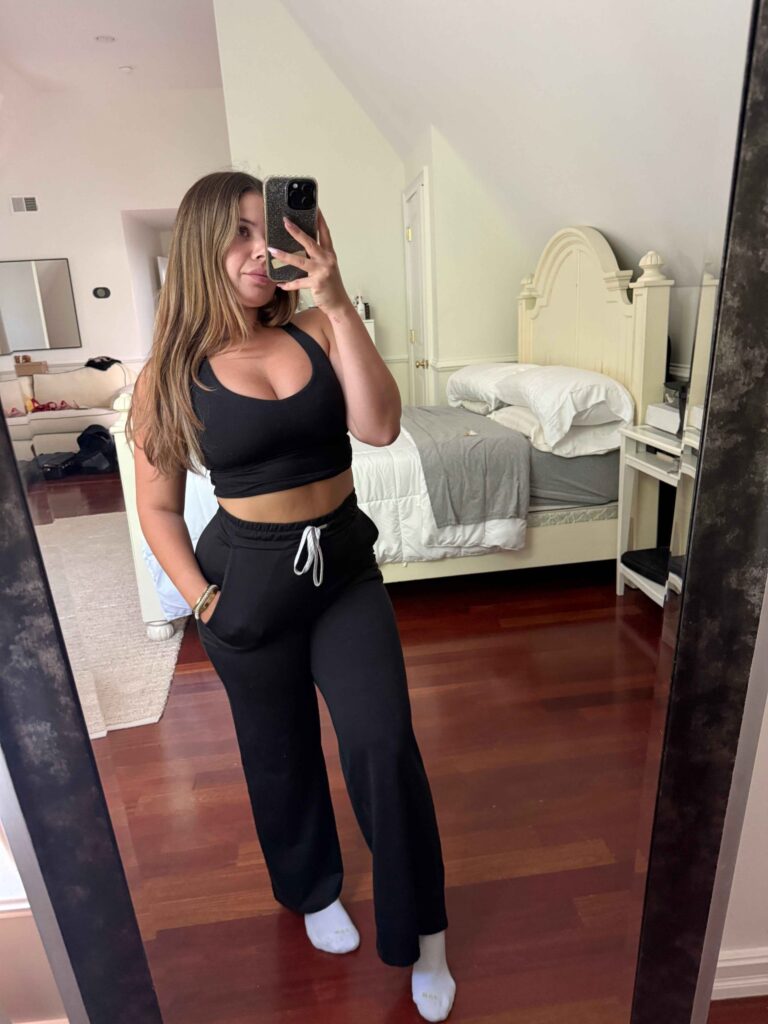 After a shower, I transition into my polished work look: the Villa Trousers paired with the Villa Cropped Tank. They’re tailored enough for meetings but as comfortable as loungewear — the hidden elastic waistband and wrinkle-resistant fabric are total lifesavers. I love that Vuori makes me look professional without the stiffness of typical office wear. By the end of the workday, I’m still focused and ready to slip into evening mode.