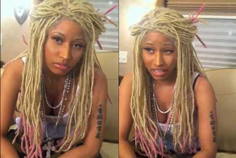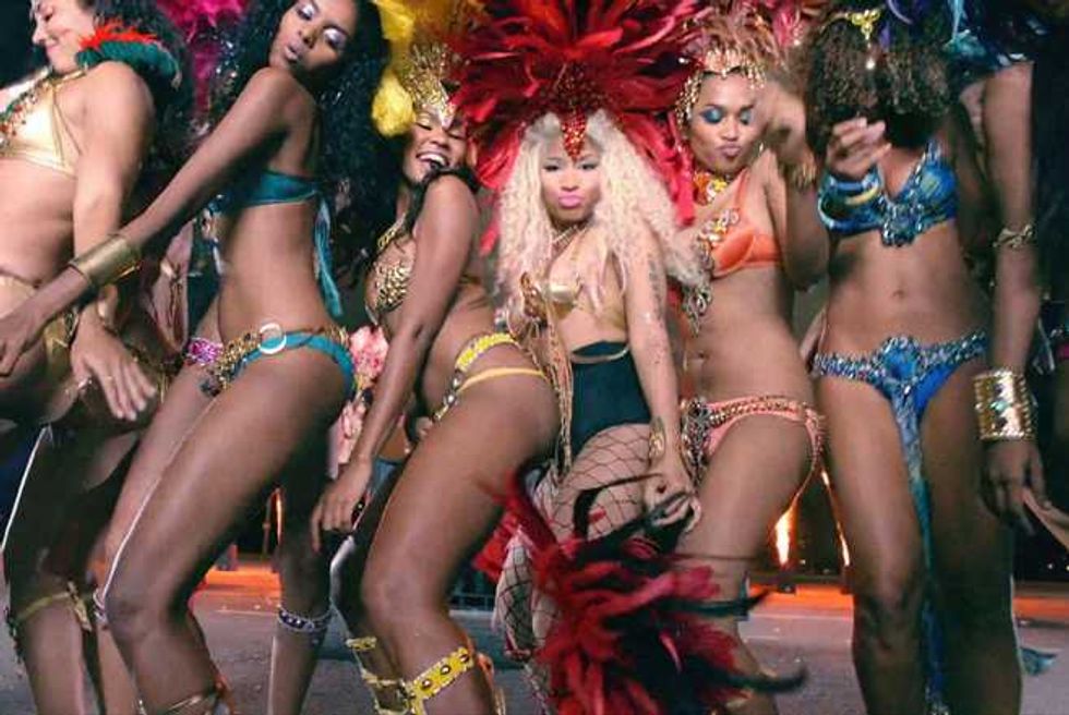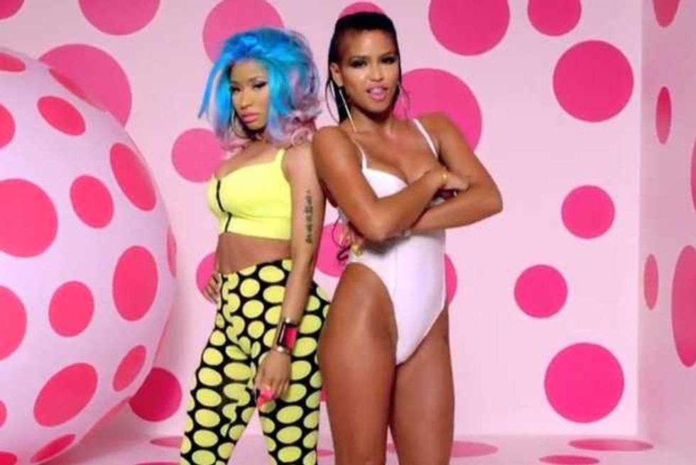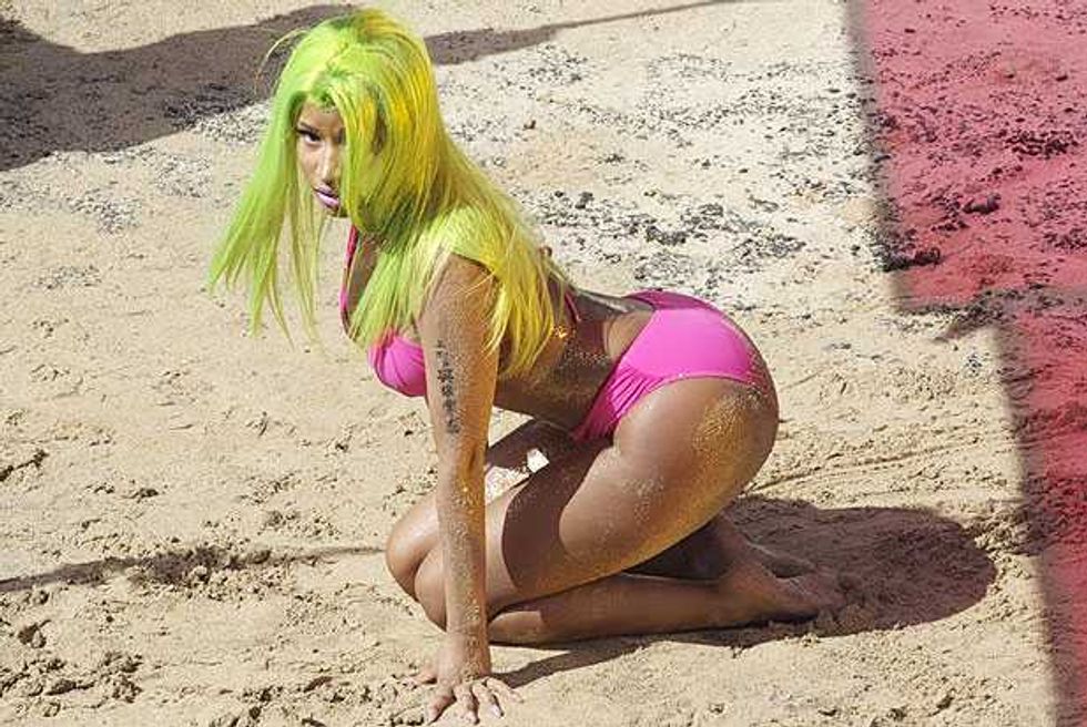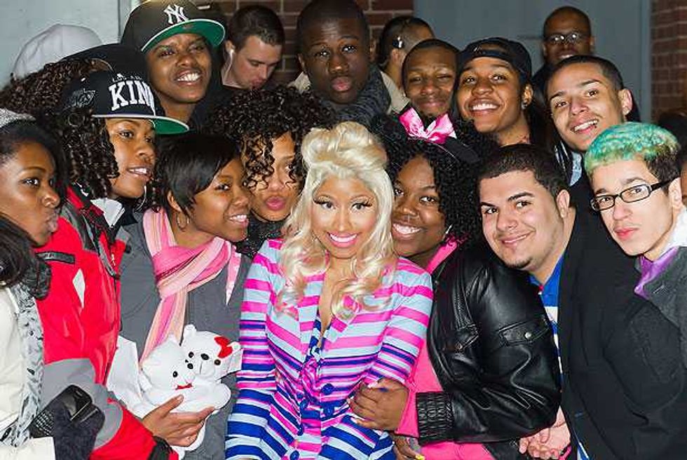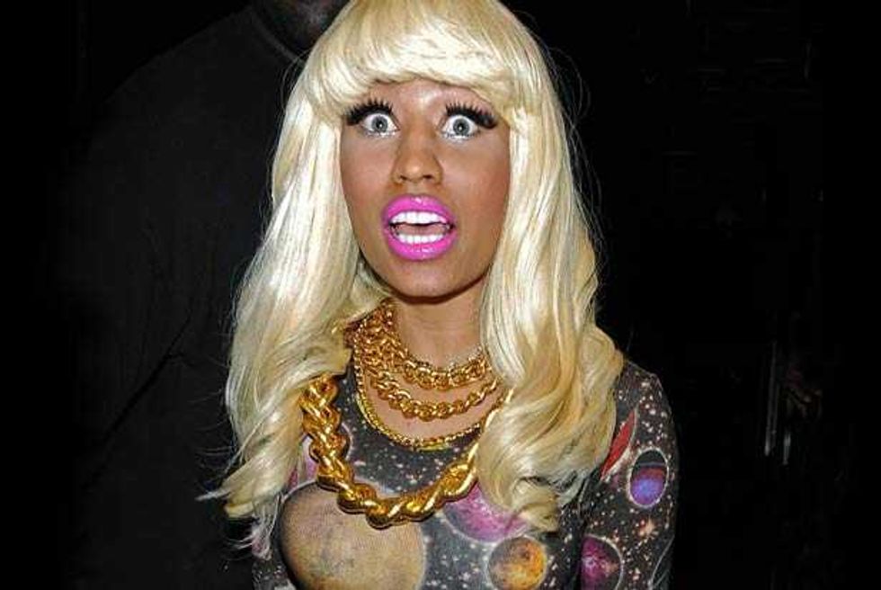 We guess? Every pop star is controversial, just because that much exposure means there’s that much more opportunity for people to find fault. But there have been a few repeated assertions about Nicki. The first is that she’s not actually as gay-friendly as she’d like to pretend. The worst charge here is that she made her “It Gets Better” statement about her instead of gay kids (and she’s hardly the most self-involved pop star); the fact that she backtracked on her supposed bisexuality is more notable for its honesty than its homophobia. There have also been concerns that some of the flamboyant sexuality of her early imagery was less than helpful, but she’s moved away from the early Harajuku Barbie image of her mixtapes: the cover image to Pink Friday is all about how exaggerated stereotypes of femininity are distorting and damaging to real female bodies.