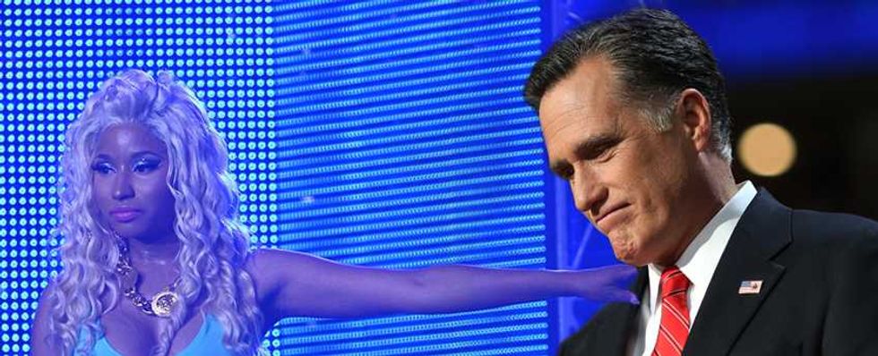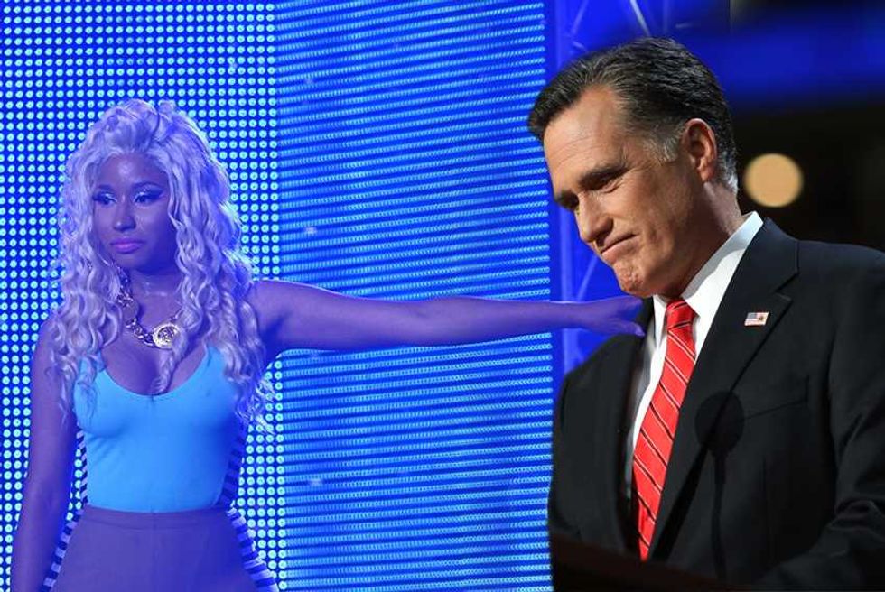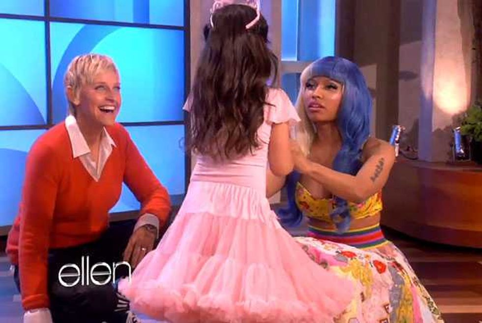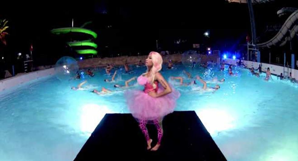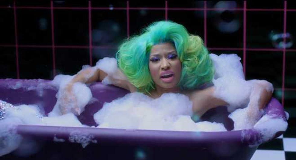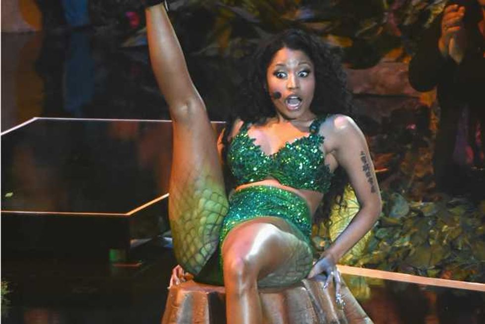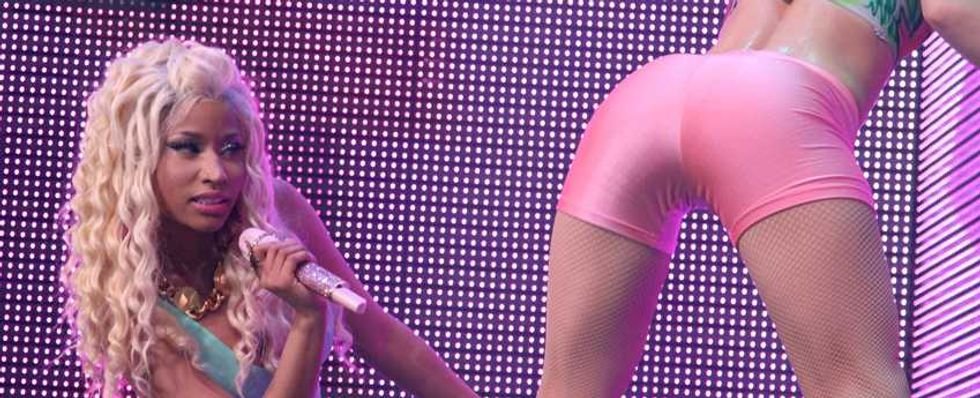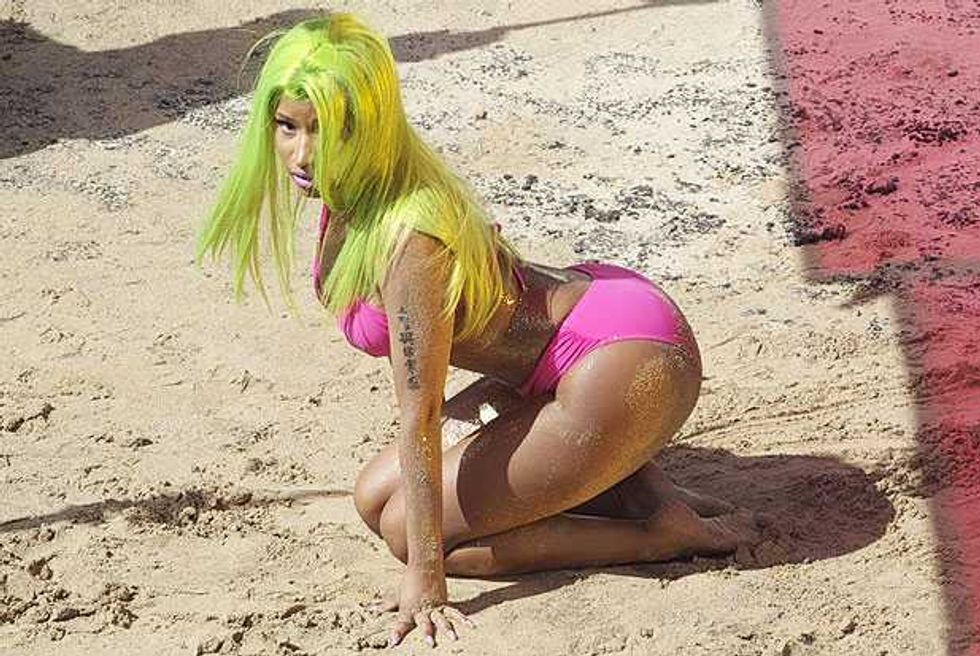We guess? Every pop star is controversial, just because that much exposure means there’s that much more opportunity for people to find fault. But there have been a few repeated assertions about Nicki. The first is that she’s not actually as gay-friendly as she’d like to pretend. The worst charge here is that she made her “It Gets Better” statement about her instead of gay kids (and she’s hardly the most self-involved pop star); the fact that she backtracked on her supposed bisexuality is more notable for its honesty than its homophobia. There have also been concerns that some of the flamboyant sexuality of her early imagery was less than helpful, but she’s moved away from the early Harajuku Barbie image of her mixtapes: the cover image to Pink Friday is all about how exaggerated stereotypes of femininity are distorting and damaging to real female bodies.