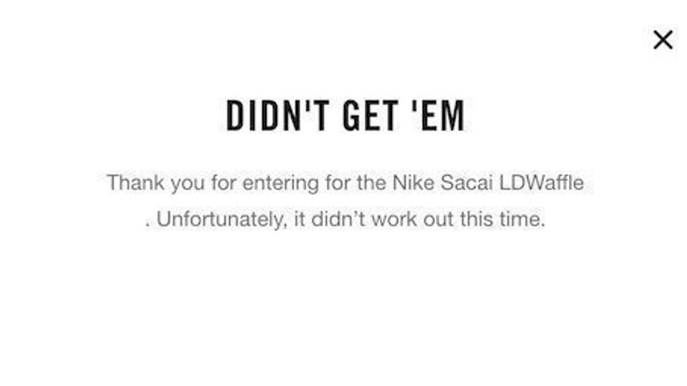 It is almost as if the “You’re in Line” notification acts as a placebo telling you a spot is secured on your behalf, all the while giving you a false sense of hope. The screen creates a delusion in the minds of sneakerheads, making them believe that, this time around, they will get lucky. But in less than a minute, reality comes crashing down.